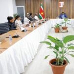 Verwachting voor geheel Suriname:Gedurende de avond en nachtelijke uren is het overwegend bewolkt met enkele lokale buien; inhet zuiden van het land kans op enkele onweersbuien. Aan het eind van de nacht ontstaat inbepaalde gebieden nevel en/ of mist. Morgen, tijdens de morgenuren is het lokaal tijdelijk bewolkt met zonnige perioden. In de middag en vooravond is er een toename in enkele lokalebuien, voornamelijk in het noorden en noordwesten van het land; deze gaan gepaard metonweer en/ of windstoten.
